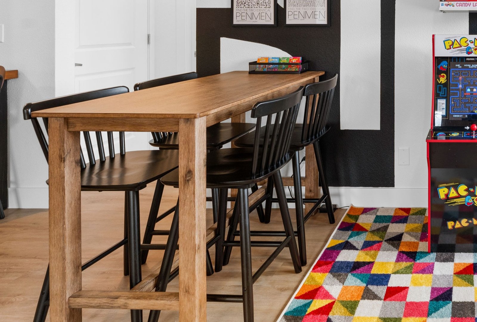 These cute black stools provide flexible seating options for kitchens, dining areas, and entertainment spaces. The black finish offers a clean, timeless look that blends easily with most decor styles. Ideal for maximizing seating, they help ensure every guest has a comfortable place to sit. A practical and stylish addition to any short-term rental or home.