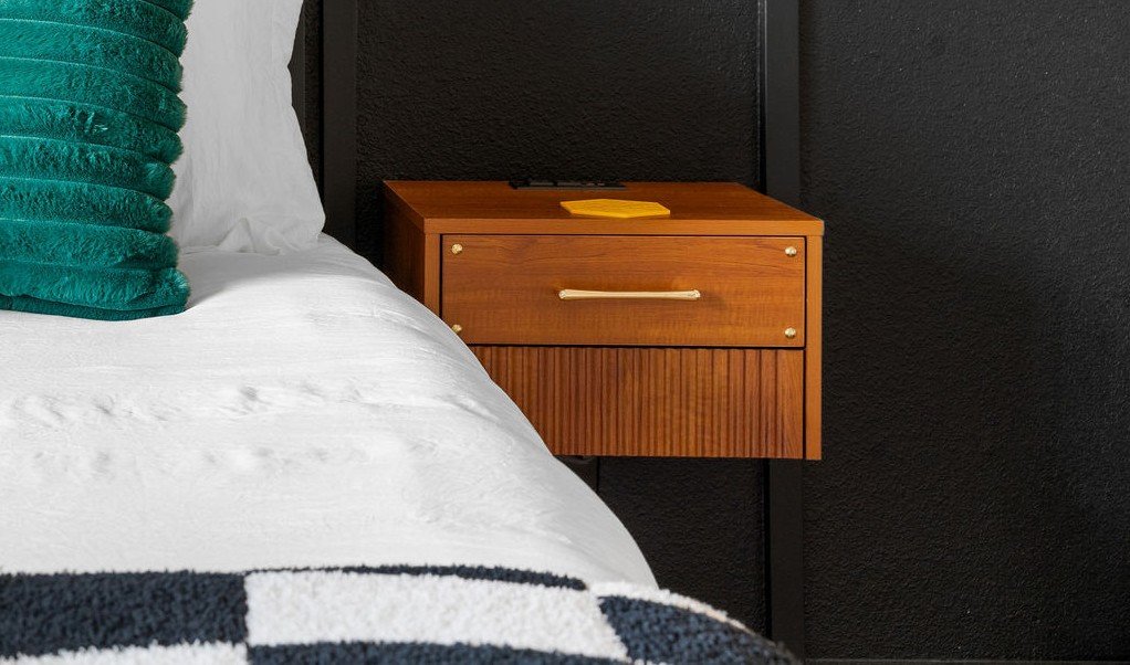 This floating nightstand is one of our favorite space-saving pieces. The wall-mounted design keeps floors clear and makes cleaning a breeze, while the built-in USB outlets offer convenient bedside charging. These are sturdy, super functional, and a great value for the price. Perfect for modern bedrooms or small spaces.