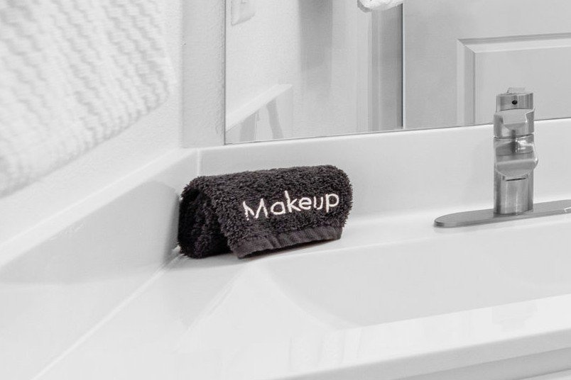 Black makeup cloths help protect white towels by providing a designated option for makeup removal. A thoughtful extra that helps keep linens looking clean and fresh.